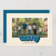 This retro inspired Christmas card features the word merry in blue script at the bottom of a photo on the front. The back of the card has space for a second photo. Customize it with a short personal greeting, your name, and the year.