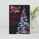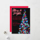 This festive and cool corporate holiday greeting card is the perfect design to set the vibe for your seasonal event. It features a modern and artsy colourful green, blue, red, orange, pink, and teal bokeh Christmas tree on top of a black background with a glowing red and white typography quote, "Merry and bright." It's trendy, unique, and fun!