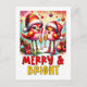 Merry & Bright Birds Toasting Under Twinkling Lights Postcard