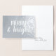 This beautiful and elegant card is perfect for all your holiday needs! The front of the card has a real silver foil background. The words "MERRY & bright" are in white, in a combination of print and script brush (brushstroke) calligraphy. Inside, the customisable message reads "may your days shine with joy" in matching silver-tone lettering.