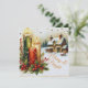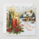 The card's design incorporates traditional Christmas imagery and colours, creating a warm, nostalgic atmosphere. The central focus is on the glowing candles and the snowy cottage, with the text "Merry & Bright" prominently displayed.