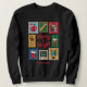 Celebrate the holidays in style with this cheerful “Merry & Bright” teacher black sweatshirt! This festive postage stamp collage features vintage-style classroom and Christmas icons, including a smiling apple in a Santa hat, a pencil wrapped in holiday lights, stacked books, and a chalkboard. Perfect for gifting, classroom celebrations, or cosy holiday outfits, this sweatshirt brings festive cheer to every teacher’s wardrobe.