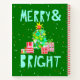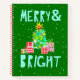 A bright Christmas tree adorned with colourful ornaments is surrounded by pink and red gifts just waiting to be opened. This design features the phrase "Merry & Bright." | Blanckslate | 141050D