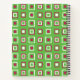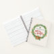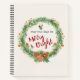 A Christmas spiral notebook with a watercolor wreath. Green pine needles, pine cones and decorative berries make up this festive wreath. Inside the wreath are some decorative ornaments and the words" may your days be Merry & Bright. Written in a trendy red font. A green and red pattern with whimsical squares on the back.