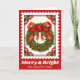 Merry & Bright Christmas Wreath Postage Stamp Holiday Card