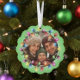 Share joy this season with this festive holiday ornament card. Our card features a beautiful bright green background with your photo surrounded in festive old fashion colourful Christmas lights. The back has a soft blur white centre, with bright pink and festive green touches. Perfect for adding your Christmas greetings to gifts for loved ones. Create a lasting memory with this custom photo Christmas ornament card – an ideal holiday season greeting for your friends and family. Created by Simply Farmhouse Press.