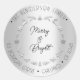 Merry Bright Family Address Wreath Grey Silver Classic Round Sticker