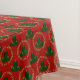 Merry and Bright, Green Christmas Candle-COTTON TABLECLOTH 52x70in-A plump green pillar candle lit and dripping wax. The candle sits on a gold candle holder trimmed with a ring of holly and berries. Every other candle is trimmed with a ring of gold glittered text. The text reads: MAY YOUR CHRISTMAS BE MERRY AND BRIGHT. The background is solid red. This candle design is also available with a red pillar candle. Choose any size of Zazzle's cotton tablecloths. Cotton runners and place-mats are available as well.