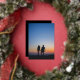 Real foil Merry & Bright in minimal style foil letters with your name and year over full bleed photo. Choose your foil colour: gold, silver or rose gold, and backer colour. Add more photos to the back or write a message.