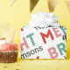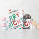 Merry and bright typography pattern with letters in trendy pink, red, and green colours with the customisable family name.