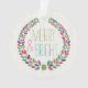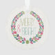 This holiday ornament is perfect to decorate your modern home for the holidays, or to give as a gift! It features a nature tree bark pattern background in an off-white colour. On top of the background is a modern & fun colourful wreath. The words "Merry & Bright" are situated inside the wreath.