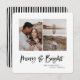 Merry & Bright multi photo christmas card. Modern black and white holiday design. Script text with a modern edge. Hand painted striped backer. Change the packet colour to customise.