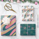 Merry Bright pink green gold snowflake retro swirl Wrapping Paper Sheet