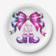 Make your holiday gatherings extra magical with these Merry & Bright Purple Christmas Paper Plates, featuring a whimsical candy cane bow and adorable elf shoes in rich festive shades of pink and purple.