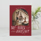 Merry & Bright Red Elegant Script Christmas Photo Holiday Card