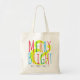 This holiday tote bag features a bright typography design of the words "Merry & Bright" in red, green, blue and orange with your name below to customise. Designed by world renowned artist Tim Coffey.