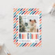 This Christmas Holiday Card features a retro colour typography text "merry & bright", the family's names, year, and photo on a retro stripes background.