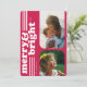Stand out from the crowd with this unique holiday card featuring a bright magenta background with retro-inspired type reading "Merry & Bright." accenting two photos with rounded corners. The back has an additional photo and space for a longer message.