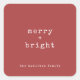 Merry + Bright Typewriter Text Christmas Holiday Square Sticker