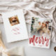 This minimalist design features "Merry" in brush script, in any colour with your personalisation and your favourite photo on the front and your personalised text and smaller photo on the back. Use the template form to add your custom text and photo.