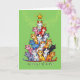 Pun Christmas Card for a cat lover. Colorful cats arranged as a Christmas Tree with a starry overlay and green background with the words "Merry Catmas"
