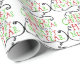 Holiday wrapping paper with red, green, and black fancy text that reads Merry Christmas and a Happy New Year!