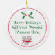 This adorable little mouse is the star of this Ceramic Ornament. Ready for the holiday season, Mr. ChrisMouse is wearing his red scarf with white trim. With his candy cane in hand he's here to wish you a "Merry ChrisMouse". On the back of the ornament there's a smaller version of the mouse and an area for you to add your own text, which can be customized.