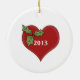This adorable little mouse is all dressed up in a red dress with a green frock over it. She even has a red bow in her hair. She's carrying a Christmas gift with her. Around the outer edge of the ornament it says Merry ChrisMouse. On the reverse side is a heart with holly berry leaves on it and the year. If you wish to personalise it another way on the back, you are welcome to!