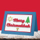 This Chrismukkah card is a combination Christmas and Hanukkah card for interfaith families. The card combines elements from each of the faiths to be inclusive for all. The words, "Merry Chrismukkah" appears in the centre with the Star of David, a Christmas tree and a Menorah. Inside the words, "Wishing you a Joyful Holiday Season!" appear. You can customise the design inside with your names. Copyright Kathy Henis