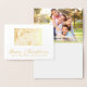 Wish them Merry Christmas with this simple but elegant 2-photo gold foil family Christmas card featuring two of your photos (the front photo in gold foil) with hand lettered typography, as well as the year.  Easy to customise with your own text and photos.