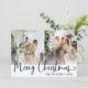This fabulous photo collage Christmas card with 3 photos, Merry Christmas in a modern script font, and your family name and year would be perfect for sending to your friends and family. Everyone will love getting new photos of your adorable kids or beautiful family. The fonts are modern and clean in navy blue. To make this card your own, simply select Personalise this template, upload your favourite photos of your children or family and type in your family name and the year. It's super easy! In just seconds you will see your unique and fabulous photo holiday cards.