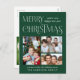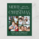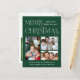 Elegant green holiday postcard with "Merry Christmas" in stylish white vintage typography, "happy new year" and a greeting in white modern typography, 3 of your favourite photos and your name. On the back, add a 4th photo and personalise your seasonal message to friends and family.