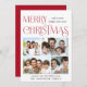 Elegant holiday photo greeting card featuring "Merry Christmas" written in stylised vintage red typography, "happy new year" and a seasonal greeting in modern typography, 4 of your favourite family photos and your name.