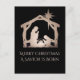 Elegant modern design—Illuminated nativity with the star of Bethlehem. Black and white lettering: Merry Christmas A Saviour Is Born. Christmas postcard.