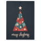 Winter holidays design, merry xmas custom text, christmas tree and stars, abstract artistic seasonal pattern