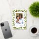 The foil beautifully highlights the foliage illustration and draws attention to the photo. Great color combo. Printing was excellent! No complaints!