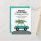 A modern Holiday greeting with an illustration of a car moving gifts and a tree.