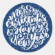 Merry Christmas and Happy New Year Blue Glitter Classic Round Sticker