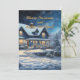 Check out this awesome holiday card! It's got this super cozy image of a snowy Christmas cottage on it, all lit up on a beautiful winter night. You can almost feel the chill in the air and the warmth from the lights. Perfect for adding that extra festive touch to your holiday gifts!