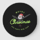 This image displays a "Merry Christmas and Happy New Year" greeting card with a striking and contrasting design. The deep black background highlights the word "Christmas," which is written large and bold in a bright, neon lime-green cursive style, accompanied by an illustration of a smiling Santa Claus head at the top. The overall design has a modern and festive feel, with essential red and green color accents for the celebration.