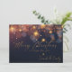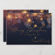 Merry Christmas And New Year Script Happy Holiday Flat Card . The design has a pretty string lights design on a dark blue background with MERRY CHRISTMAS AND HAPPY NEW YEAR written in a beautiful script font . Send out this beautiful sparkly Christmas card to friends and family this Holiday Season . This sparkly pretty Holiday Card can be customised by changing the names . Check out the other holiday cards in the collection.