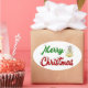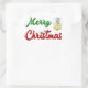Stickers with Merry Christmas in 3D green and red text and an angel. Stickers are available in several shapes.