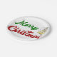 Merry Christmas Angel red green script Paper Plate