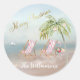 Merry Christmas Beach Flamingo Wreath Unique Classic Round Sticker