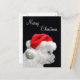 Bichon Frise puppy in a Santa hat, profile view, photo Christmas card. Text may be changed or removed with the CUSTOMIZE button.
