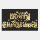 Merry Christmas Black and Gold Elegant Stars Text Rectangular Sticker