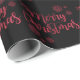 Merry Christmas Black and Red Snowflake Typography Wrapping Paper