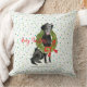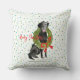 Merry Christmas Black Lab Dog Wreath Holly Family Cushion