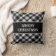 Merry Christmas Black Plaid Pattern Modern Rustic Cushion