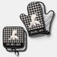 Merry Christmas Black & White Buffalo Plaid Angel Oven Mitt & Pot Holder Set